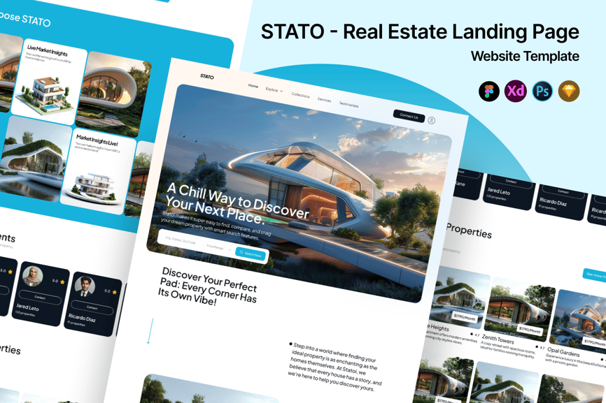 使用 Stato,体验焕然一新的房源展示方式。Stato 是一款简洁易用的落地页模板,专为现代房地产企业、房屋中介和开发商量身打造。凭借其明亮的布局、沉浸式的视觉效果和巧妙的结构,Stato 能帮助您以精美的方式展示房源、经纪人和房产特色,同时确保用户轻松导航。该模板以清晰易懂和提升转化率为设计理念,确保您的平台看起来专业且吸引人。