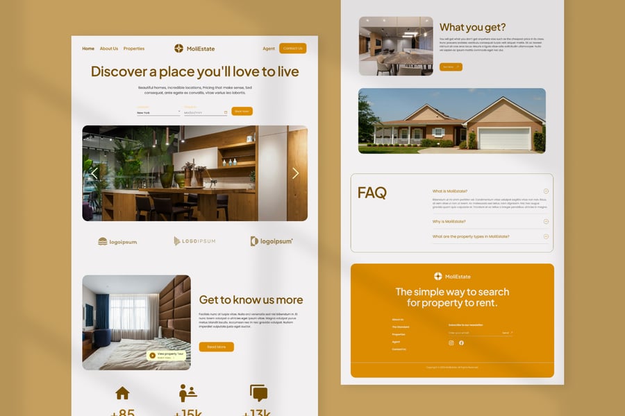 使用 Havenly Clean Real Estate Figma 落地页模板,以精致优雅的方式展示您的房产项目。这款简约专业的模板专为房地产经纪公司、开发商和房产营销团队设计。其轻盈的视觉效果、宽敞的布局和清晰的层级结构,营造出值得信赖的现代感,完美契合住宅和商业房源的展示需求。