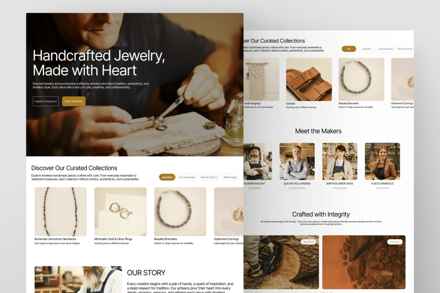 这款 UI 套件完美适用于手工制品卖家、陶艺工作室、珠宝制造商、工艺品精品店和 Etsy 风格的商店,它融合了创意和功能性,可帮助您打造迷人的在线购物体验。