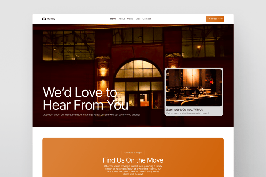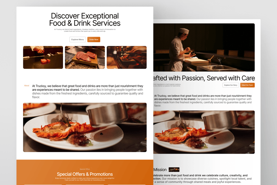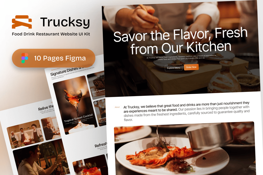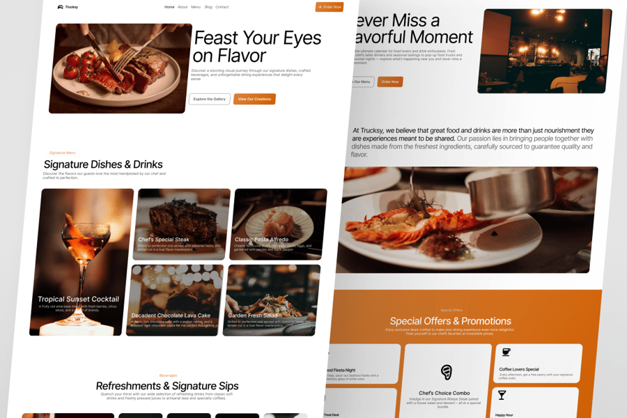 Trucksy 是一款专为让您的食品企业脱颖而出而设计的 UI 工具包,让您的品牌更具吸引力。