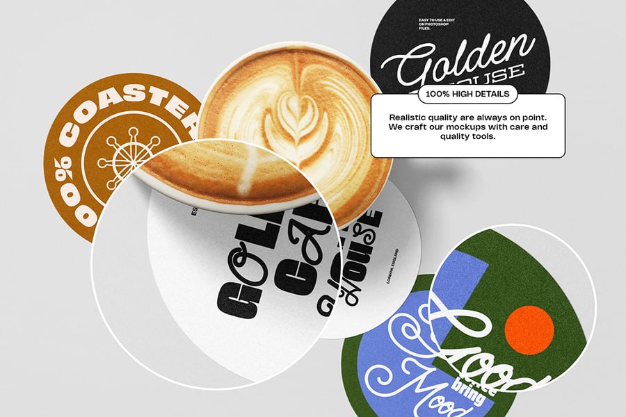 这款逼真的咖啡杯垫模型旨在以精致的细节展示您的咖啡馆标志、饮品品牌或包装标识。场景采用自然的桌面环境、柔和的灯光和触感丰富的纹理,增强了设计的真实感。这款模型非常适合咖啡馆、餐厅或生活方式品牌项目,以专业的质感捕捉温馨的咖啡馆氛围。每一处阴影、反射和材质纹理都经过精心设计,打造出栩栩如生的呈现效果,突显您品牌的魅力和精湛工艺。