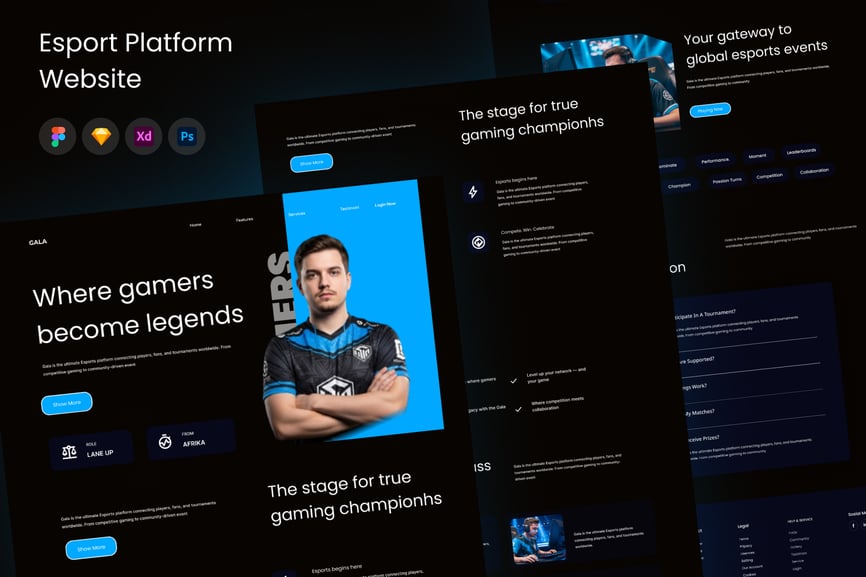 ***Gala – 电竞平台网站*** 包含 4 个文件。易于自定义、编辑和缩放。布局整齐,注重细节。
