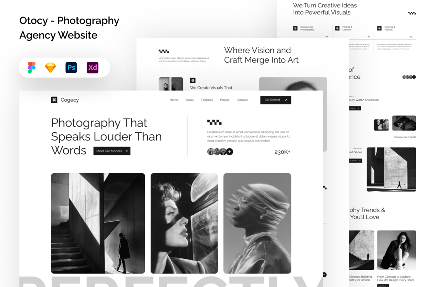 **Otocy – 摄影机构网站** 此模板的设计不仅引人注目,更能与您的受众产生共鸣。从简洁流畅的用户界面到极具说服力的品牌形象,我们专注于将您的愿景转化为令人惊艳的视觉现实。我们融合艺术巧思与尖端科技,将创意变为现实,确保每个设计都能讲述引人入胜的故事。加入我们,开启一段创意之旅,让我们助您将品牌推向新的高度。