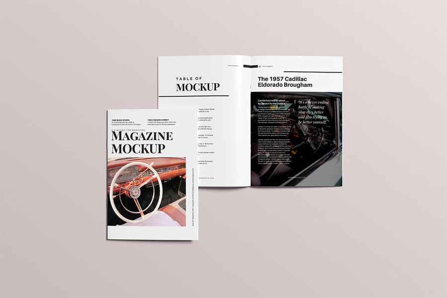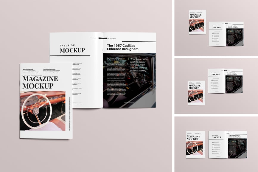 用这些精美的杂志样机展示您的设计作品。此样机包含 4 个元素,并提供分层清晰的 PSD 文件。此外,该样机还采用了智能对象功能,这意味着您只需几秒钟即可轻松快捷地将当前设计替换为您自己的设计。