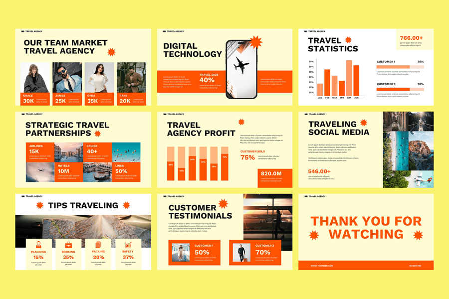 这款模板采用现代简洁的设计和充满活力的图片,在展现冒险精神的同时,也保持了专业精致的形象。动态布局、地图和信息图表让您轻松展示旅行路线、目的地和套餐对比,而图片占位符则方便您无缝添加自己的照片。这款模板能够帮助您的旅行品牌讲述引人入胜的故事,激发探索热情,建立信任。适用于旅游宣传、旅行社推广、目的地营销、旅游套餐展示、度假套餐介绍、旅行方案、旅游宣传册、旅游公司介绍、酒店介绍等。