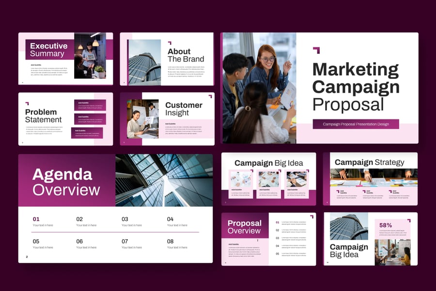 是一款创意风格的演示文稿模板,非常适合用于营销活动提案、提案、市场分析、受众分析、策略制定、议程概述、品牌推广、项目推介等多种用途。