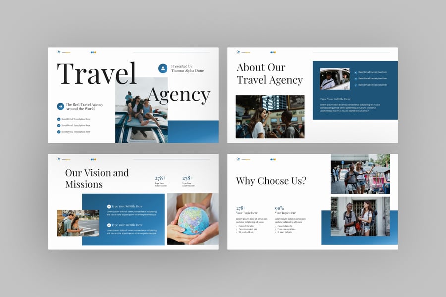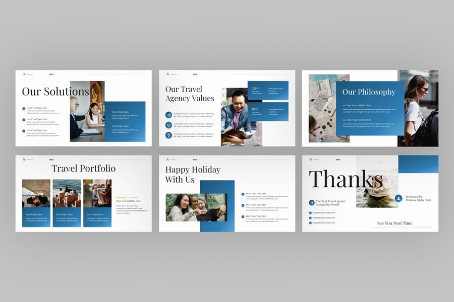 企业差旅公司、旅游局、代理机构、酒店合作伙伴、旅游创业公司和营销团队,用于展示旅游服务、目的地组合和战略计划。