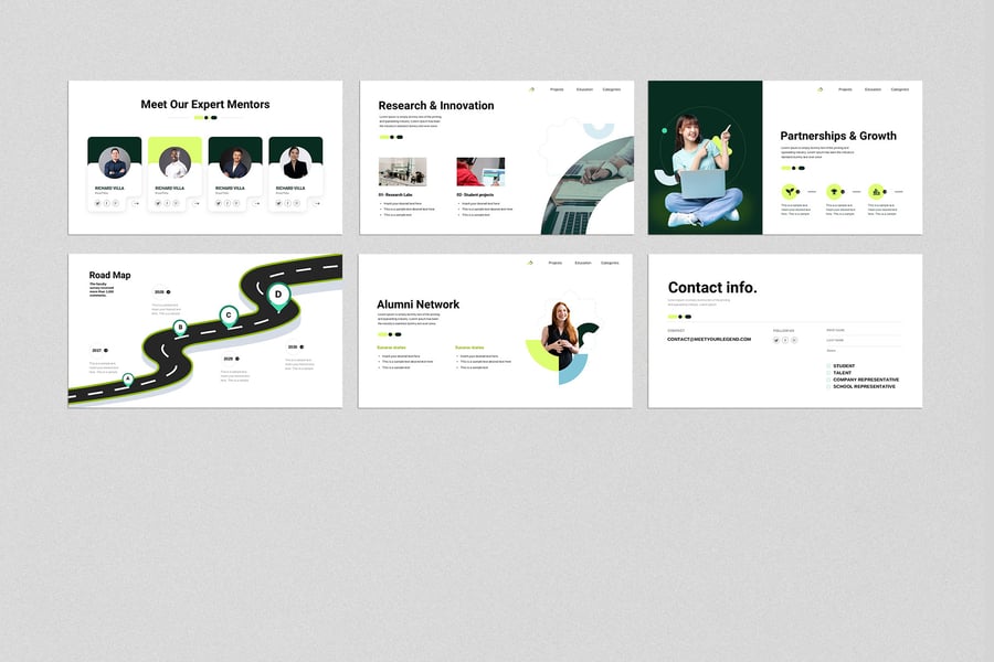这款教育演示模板专为新一代教师和教育工作者设计。其现代化的设计风格