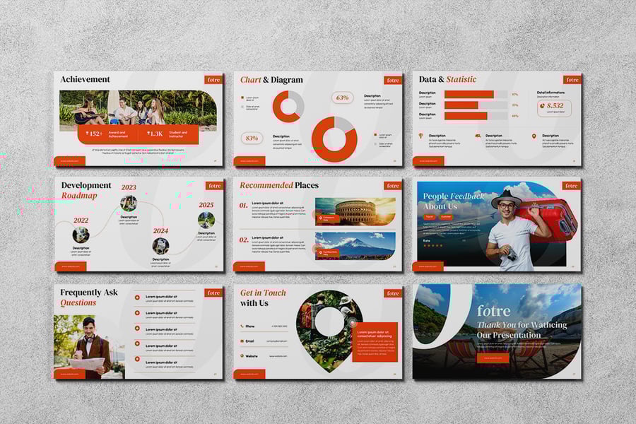 使用我们的旅行社演示模板,让您的旅行计划变得简单而精彩。该模板旨在激发您的旅行热情,并以时尚的方式展示目的地,同时还通过集成应用程序预订和安全支付解决方案,强调便捷性。无论是展示梦想之旅、旅行套餐还是团体旅游,您不仅可以突出旅行体验,还可以强调预订的便捷性。该模板非常适合希望以创意和创新给客户留下深刻印象的旅行社、旅游运营商和旅游创业公司。