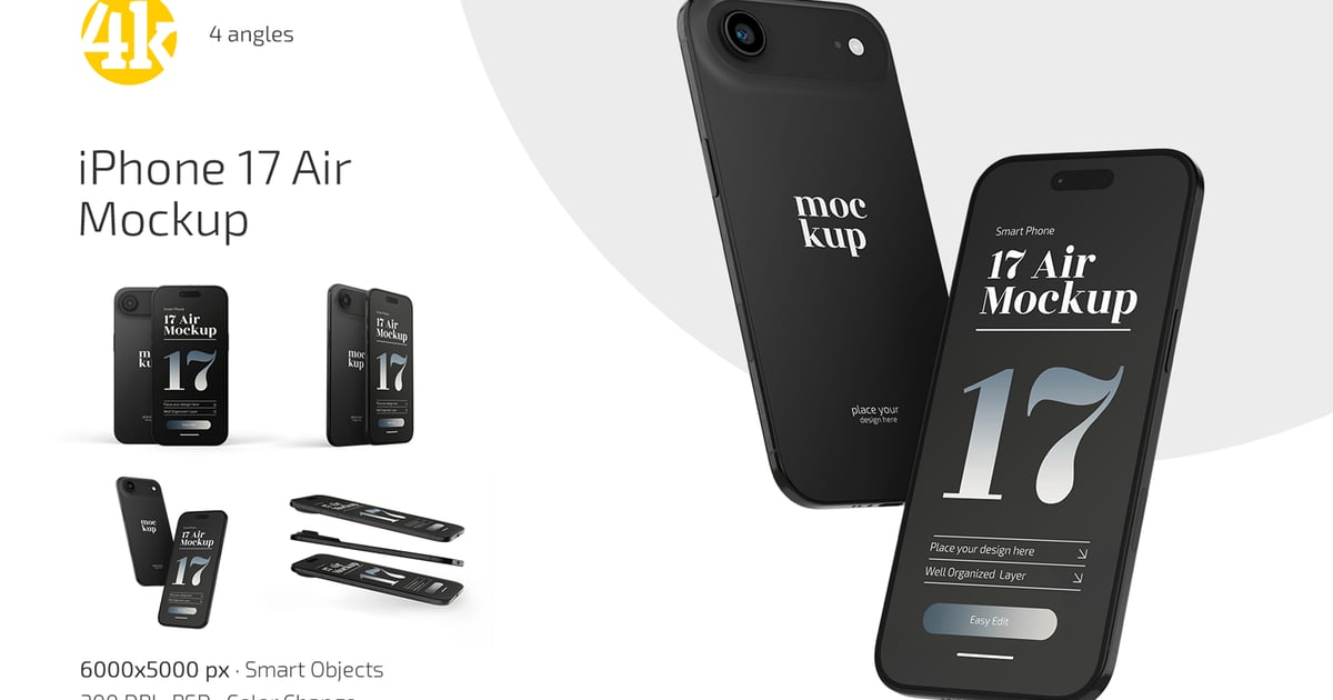 获取最新的 iPhone Air 模型,以简洁时尚的方式展示您的应用或设计。非常适合设计师在作品集、客户展示或网站上展示作品。