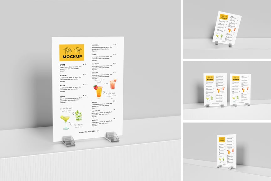 用这些精美的样机展示您的高品质桌牌样机设计。此样机包含 4 个元素,并提供分层清晰的 PSD 文件。此外,该样机还采用了智能对象功能,这意味着您只需几秒钟即可轻松快捷地将当前设计替换为您自己的设计。