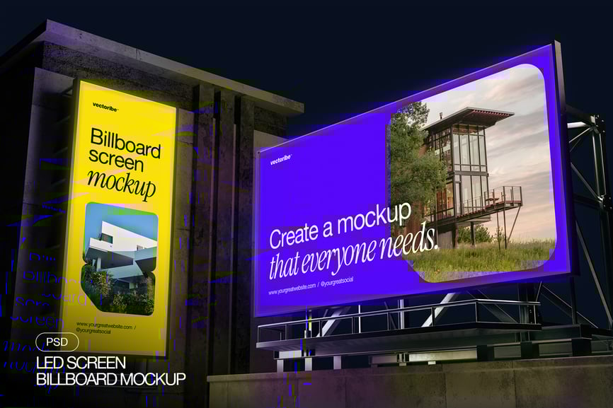 使用这款 LED 显示屏广告牌模型,让您的广告设计更具冲击力。它采用高分辨率照明、逼真反射和真实纹理打造而成。只需点击几下,即可轻松自定义屏幕区域、调整照明并放置您的设计。