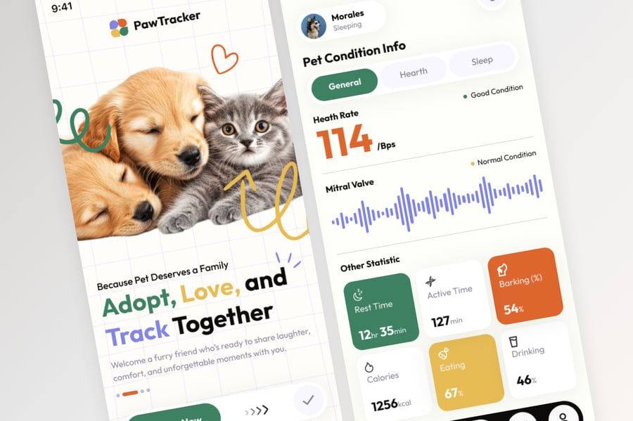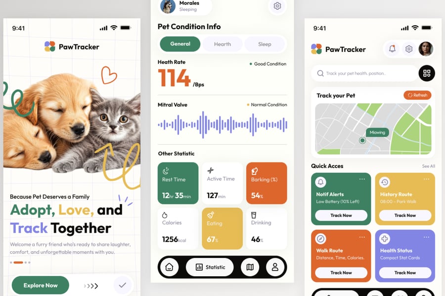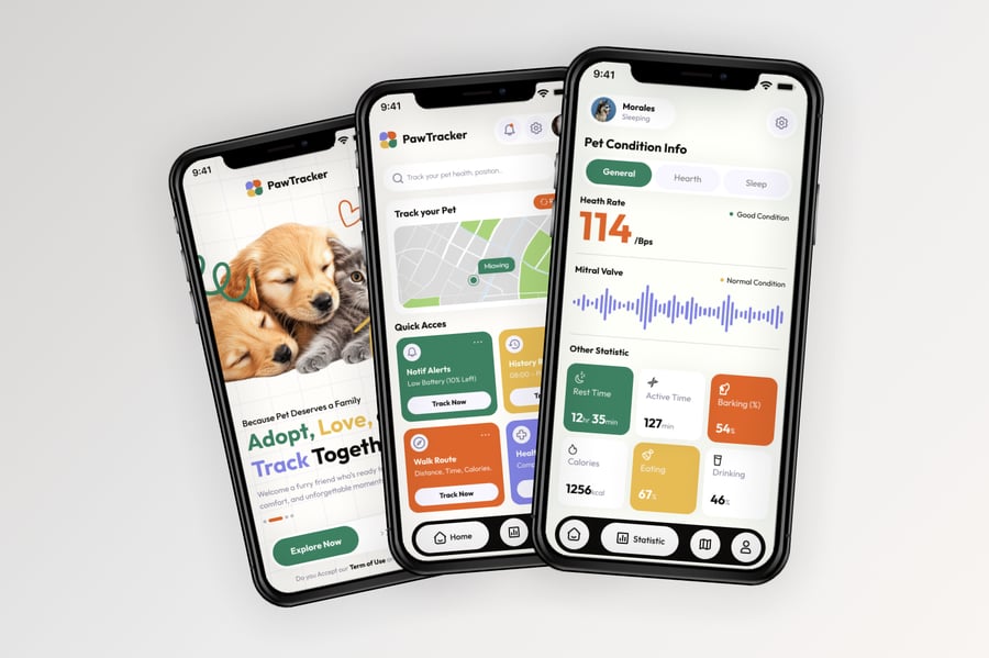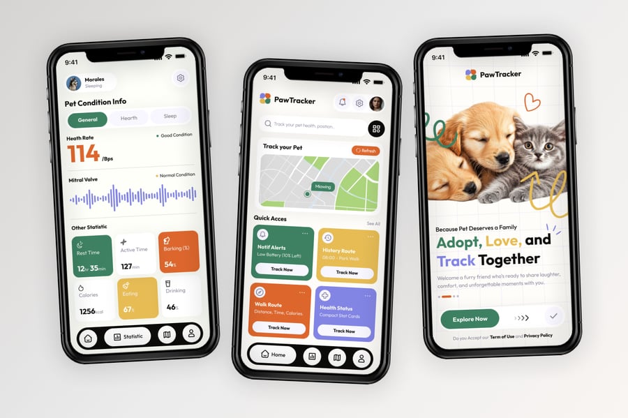 使用这款专业设计的模板,轻松打造功能强大的宠物追踪移动应用。