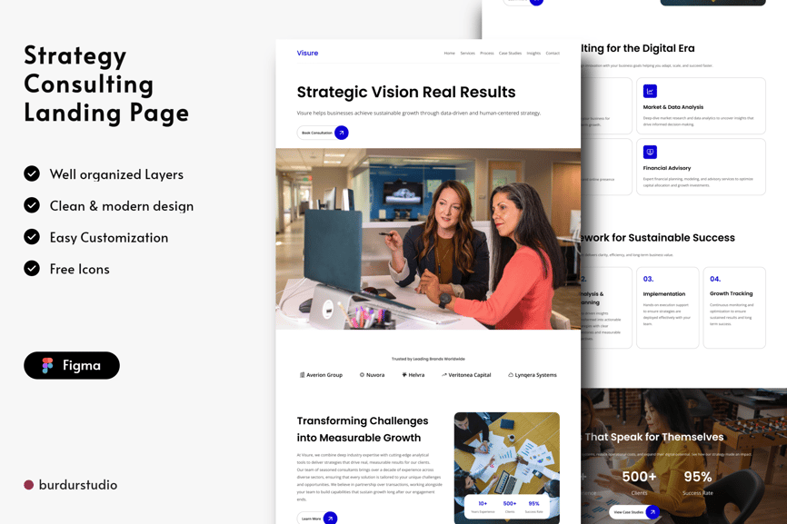 **此模板简洁而专业,风格现代。** 您可以使用 Figma 进行编辑。轻松插入内容、更改颜色,所有模板均已包含在内,可直接与您的受众分享。完全兼容、可编辑且像素级完美。此外,所有模板都经过精心组织、命名和分组。