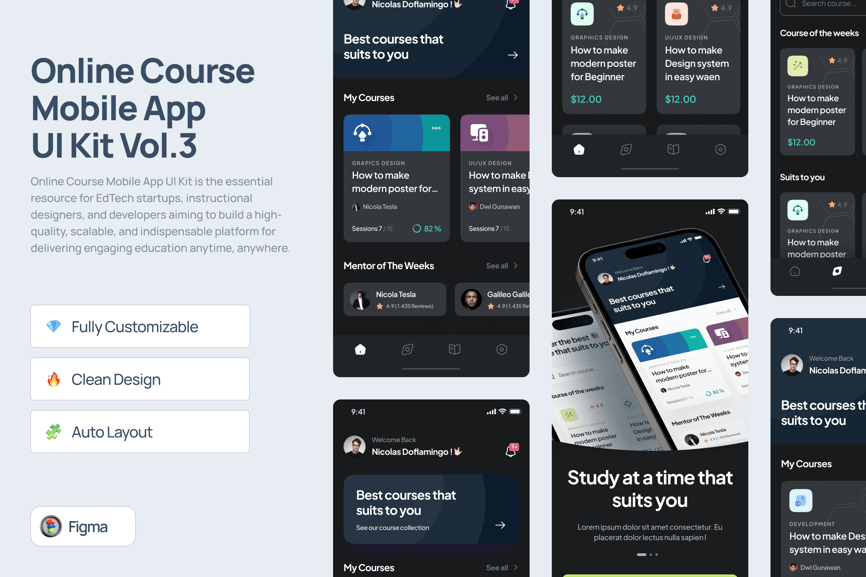 在线课程移动应用 UI 工具包是 EdTech 初创公司、教学设计师和开发人员的必备资源,旨在构建一个高质量、可扩展且不可或缺的平台,以便随时随地提供引人入胜的教育。