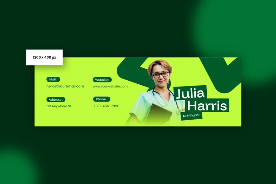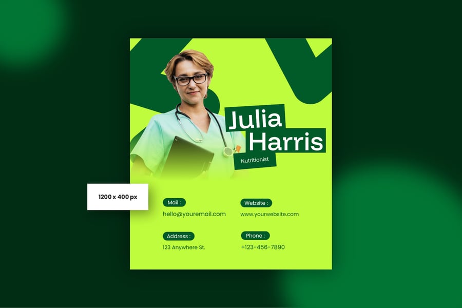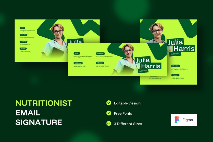 简洁专业的电子邮件签名设计,适用于商务或个人用途。一款设计提供三种不同尺寸,满足您的多种需求。现代、优雅、简洁的设计风格,令您的电子邮件签名更显专业。