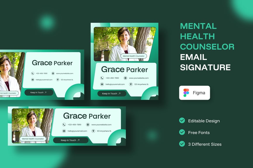简洁专业的电子邮件签名设计,适用于商务或个人用途。一款设计提供三种不同尺寸,满足您的多种需求。现代、优雅、简洁的设计风格,令您的电子邮件签名更显专业。