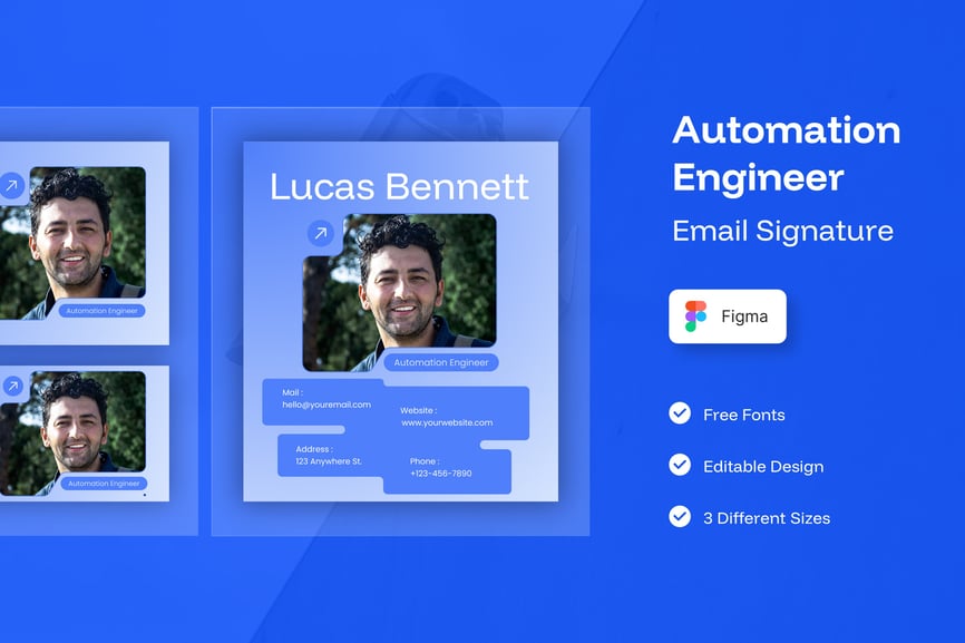 简洁专业的电子邮件签名设计,适用于商务或个人用途。一款设计提供三种不同尺寸,满足您的多种需求。现代、优雅、简洁的设计风格,令您的电子邮件签名更显专业。