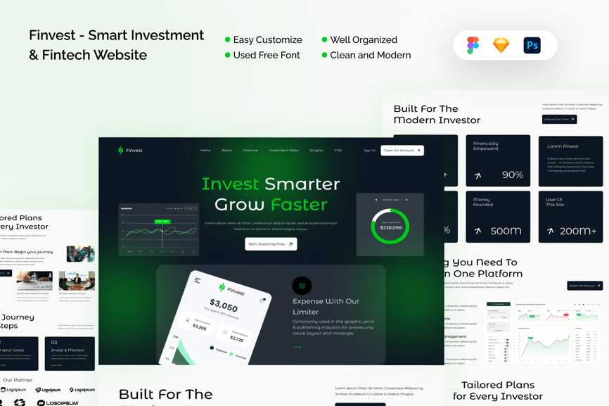 **Finvest – 智能投资与金融科技网站** 此模板的设计不仅引人注目,更能与您的受众产生共鸣。从简洁流畅的用户界面到极具说服力的品牌形象,我们专注于将您的愿景转化为视觉震撼的现实。我们融合艺术巧思与尖端科技,将创意变为现实,确保每个设计都能讲述引人入胜的故事。加入我们,开启一段创意之旅,让我们助您将品牌推向新的高度。