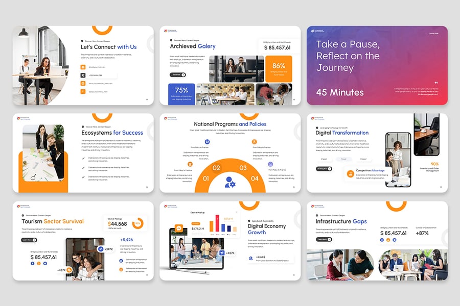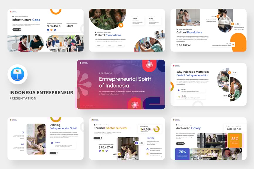 **印尼创业家 – 商业启动主题演讲** 使用“印尼创业家”主题演讲模板,提升您的演讲水平。这款多功能、创意十足且设计简洁的 Keynote 模板,专为企业和个人用户打造。它融合了现代美学与专业气质,是任何希望给客户或利益相关者留下深刻印象的人士的理想之选。凭借其灵活的风格和简洁的设计,“印尼创业家”主题演讲模板能够提升您的演讲质量,使其成为有效传达理念和提升客户参与度的必备工具。