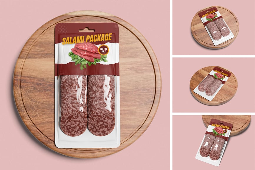用这些精美的样机展示您的萨拉米香肠包装样机设计。此样机包含 4 个元素,并配有分层清晰的 PSD 文件。此外,此样机还采用了智能对象功能,这意味着您只需几秒钟即可轻松快捷地将当前设计替换为您自己的设计。