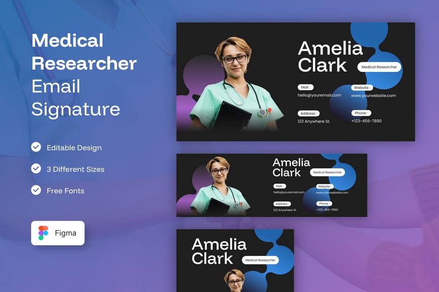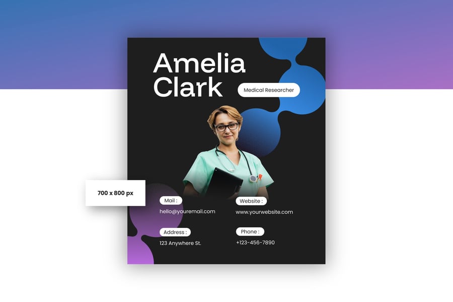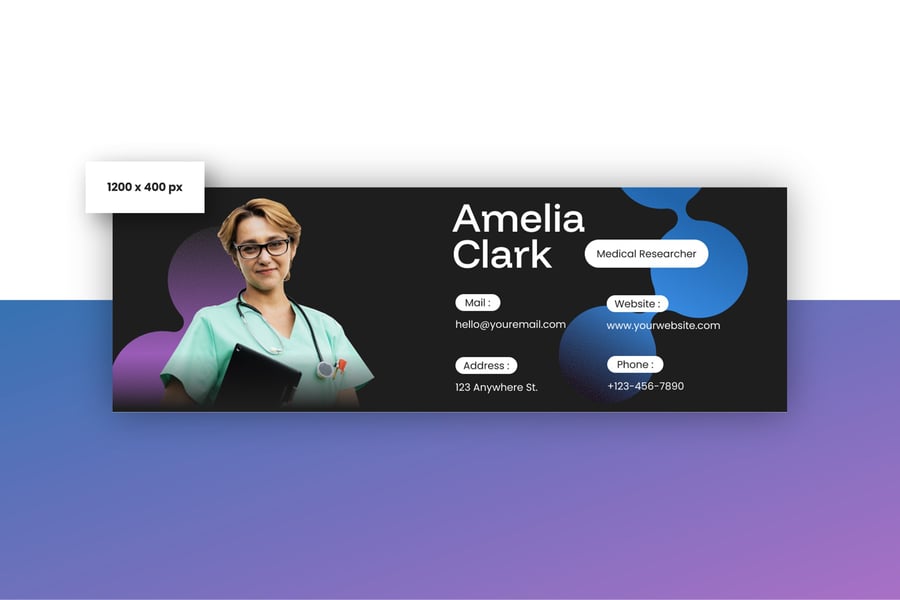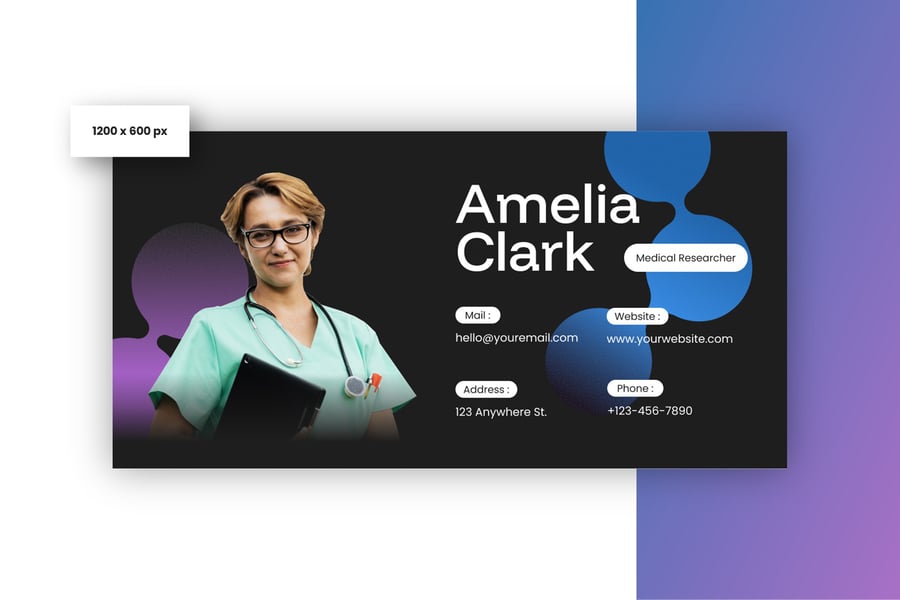 简洁专业的电子邮件签名设计,适用于商务或个人用途。一款设计提供三种不同尺寸,满足您的多种需求。现代、优雅、简洁的设计风格,令您的电子邮件签名更显专业。