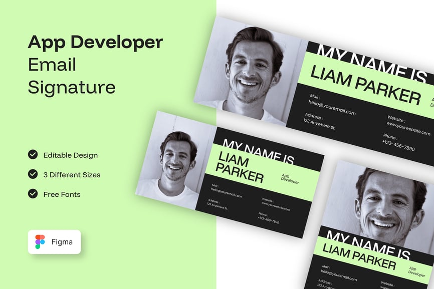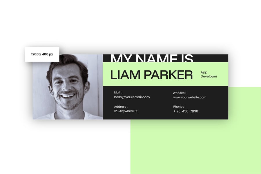 简洁专业的电子邮件签名设计,适用于商务或个人用途。一款设计提供三种不同尺寸,满足您的多种需求。现代、优雅、简洁的设计风格,令您的电子邮件签名更显专业。