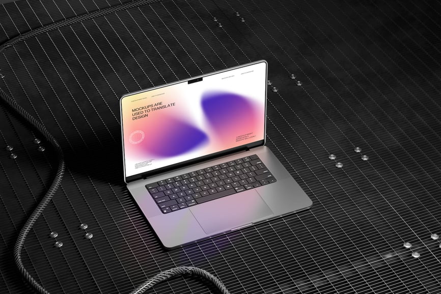 此模型展示了一台放置在工业纹理表面上的笔记本电脑,为展示用户界面设计、网站布局和数字内容提供了一个简洁现代的环境。倾斜的拍摄角度清晰地突出了屏幕,使其非常适合用于视觉演示。