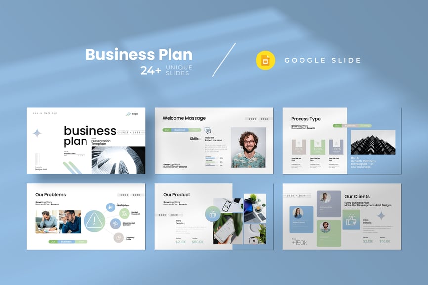 包含信息图表的商业计划书 Google 幻灯片