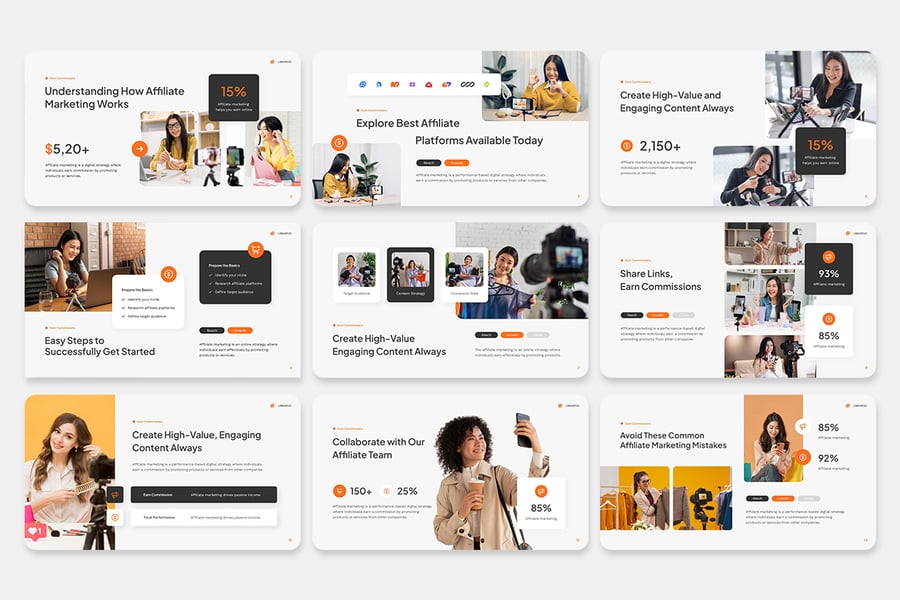 *用醒目、引人入胜且专业的视觉形象展示您的联盟营销成功案例,彰显成果。这款多功能且极具影响力的设计可节省您的时间,并提升您的演示效果。*