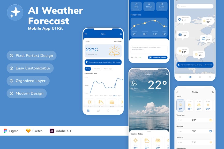 AI天气预报移动应用UI套件