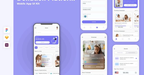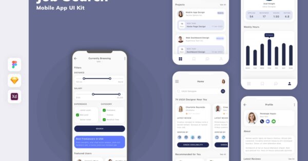 每个屏幕都可完全自定义,易于使用,并针对 Figma、Sketch 和 Adobe XD 进行了精心设计。