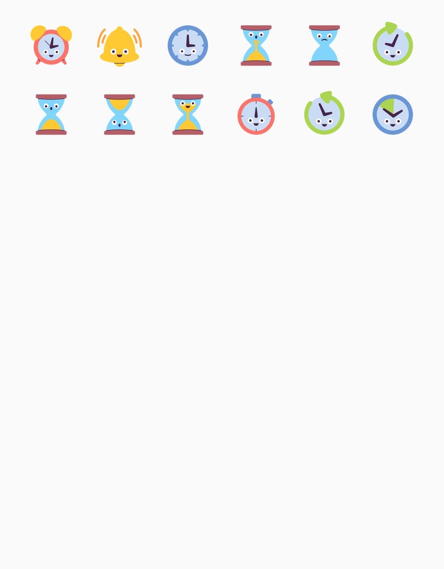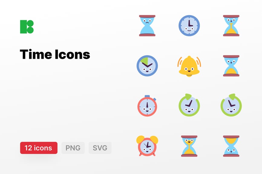 时间图标集 — 12 个以上的图标,采用矢量 SVG 格式和透明 PNG 格式。