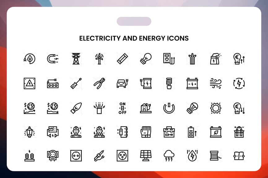 此合集汇集了一系列精选图标,主题涵盖能源、电力、科技和科学。它们尤其适用于仪表盘、用户界面工具包、移动界面、网站、演示文稿、报告和营销材料。