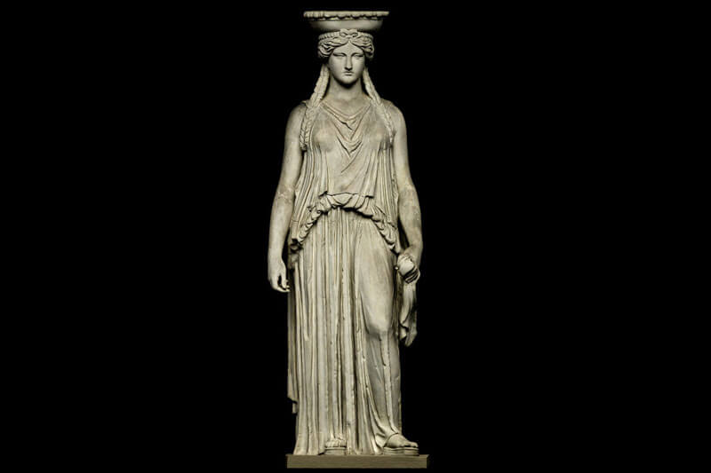 这尊巨大的站立妇女雕像(235 × 82 × 62厘米)是希腊卫城埃瑞克提翁神庙的一部分女像柱C的复制品。