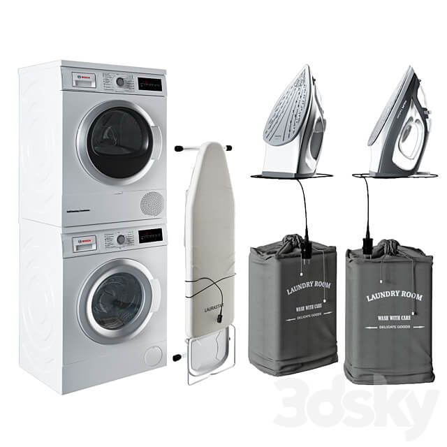 洗衣间全套物品3D模型下载(MAX) C4D / 2021年3月11日 常用3D资源 0 0 0 洗衣套装: –洗衣机和烘干机Bosch 6 Serie 铁飞利浦GC1751 / 80灰色 -熨衣板Laurastar 和其他装饰。 该模型易于编辑。