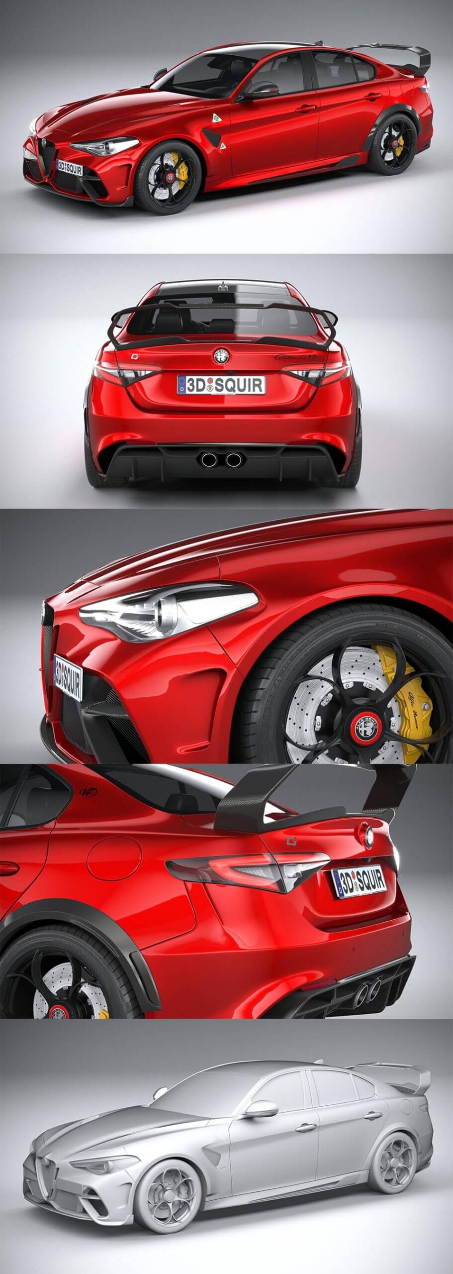 阿尔法罗密欧 Alfa Romeo Giulia GTAm 2021 跑车3D模型下载(FBX,OBJ,MAX)