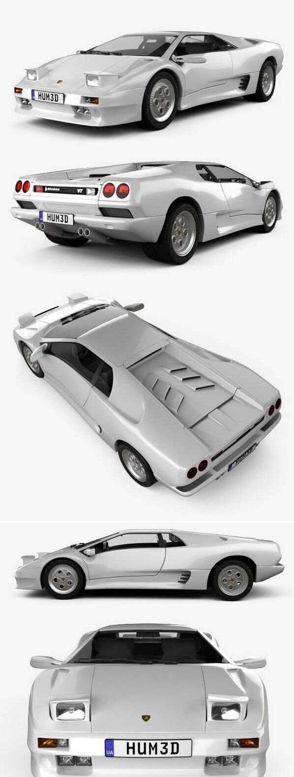 兰博基尼 Diablo VT 1993复古跑车3D模型 (MAX,3DS,FBX,OBJ,C4D,LWO)