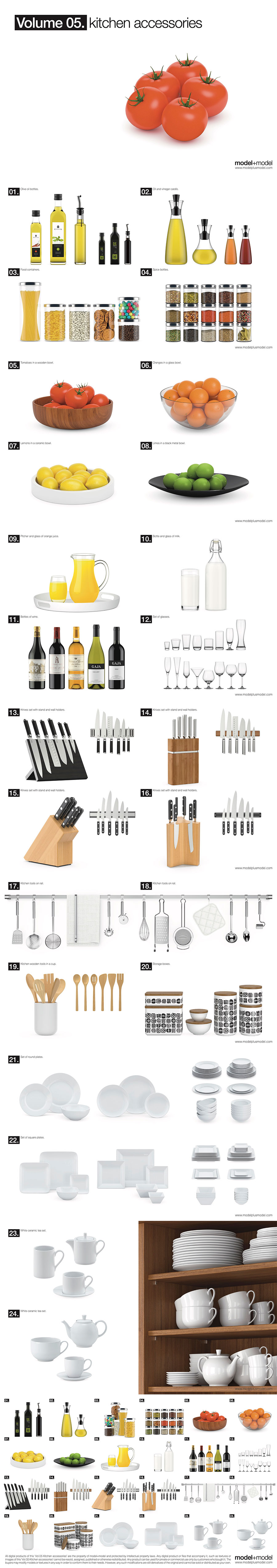 厨房常用食品厨具调味品组合3D模型下载(Blender,MAX)