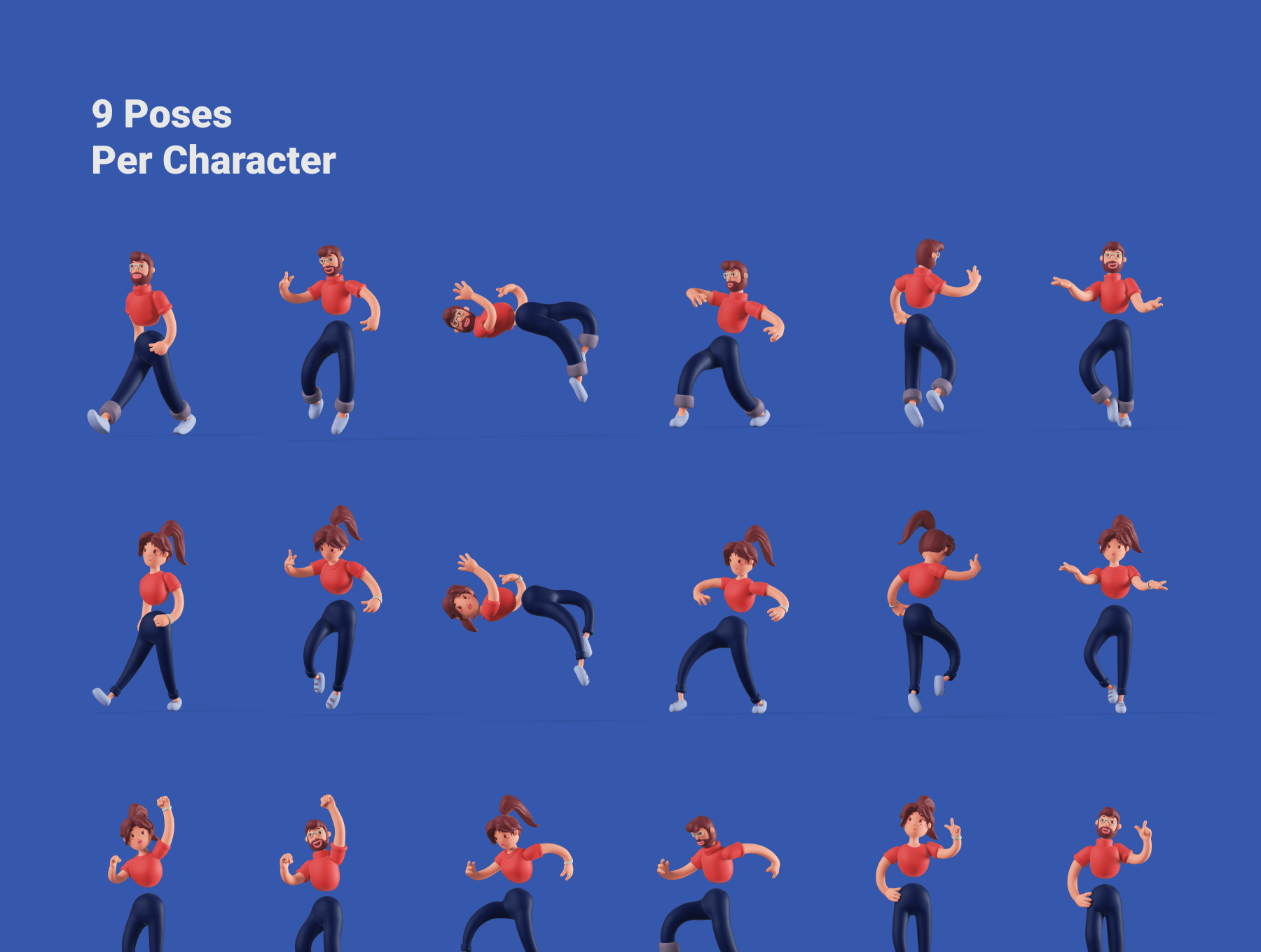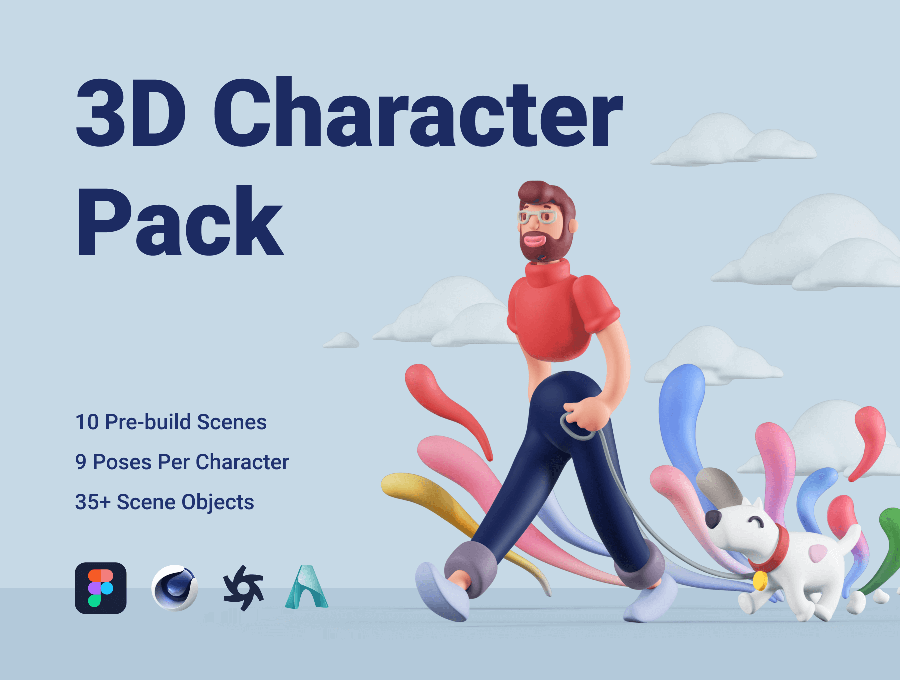 3D插画风格的卡通人物模型下载(Figma,PNG,C4D,FBX)