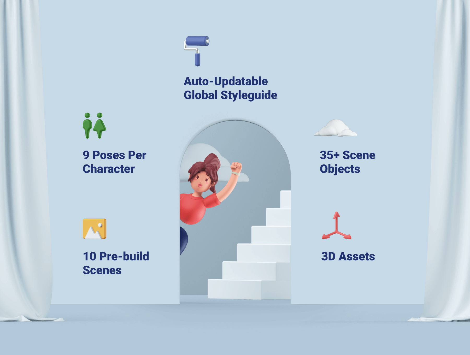 借助一系列具有工作室品质的3D角色,使您的项目栩栩如生,这些角色可以在Figma中轻松编辑,并可以在Cinema 4D中完全自定义。包括2个完全绑定的角色,每个角色有9个不同的姿势,35个以上的场景对象以及10个预构建的场景,只需单击一下即可在Octane和Arnold渲染引擎中进行渲染。包括的文件格式:Figma,PNG,C4D,FBX。