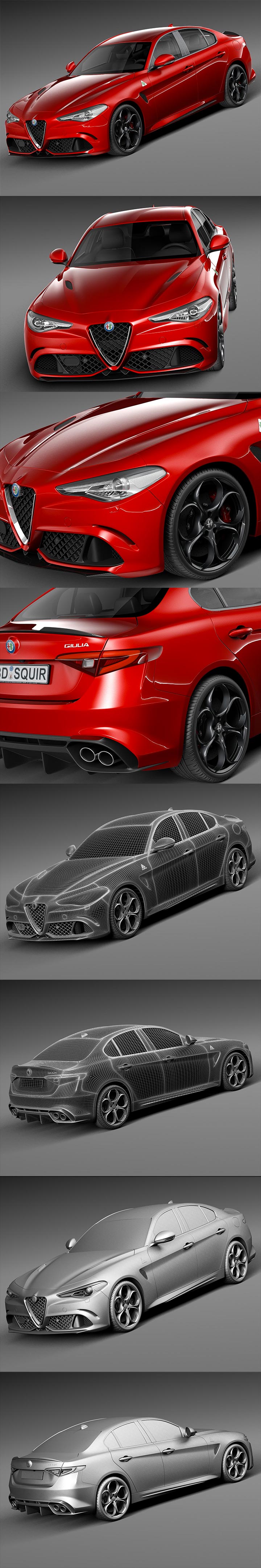 阿尔法罗密欧 Giulia Quadrifoglio 汽车3D模型下载(C4D,MAX,OBJ,FBX,3DS)