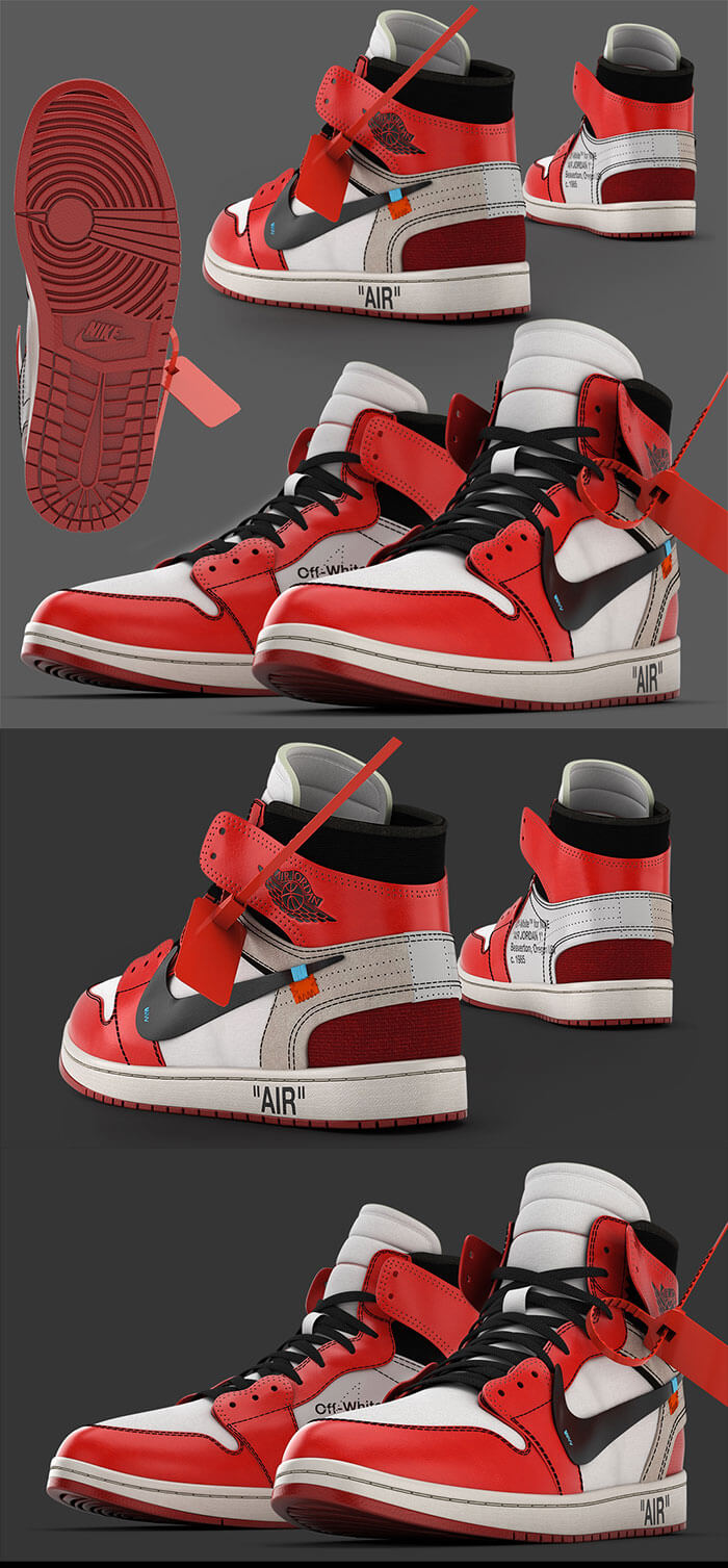 精细的Jordan Off-White NIKE 耐克3D篮球模型下载(OBJ,FBX,MAX)