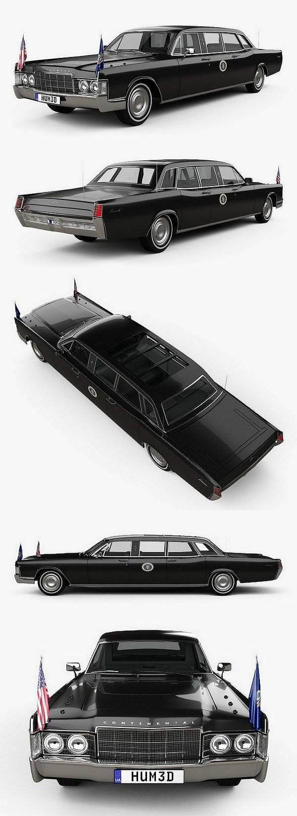 林肯加长版汽车教程 US Presidential State Car 1969轿车3D模型下载 (C4D,FBX,OBJ,MAX)