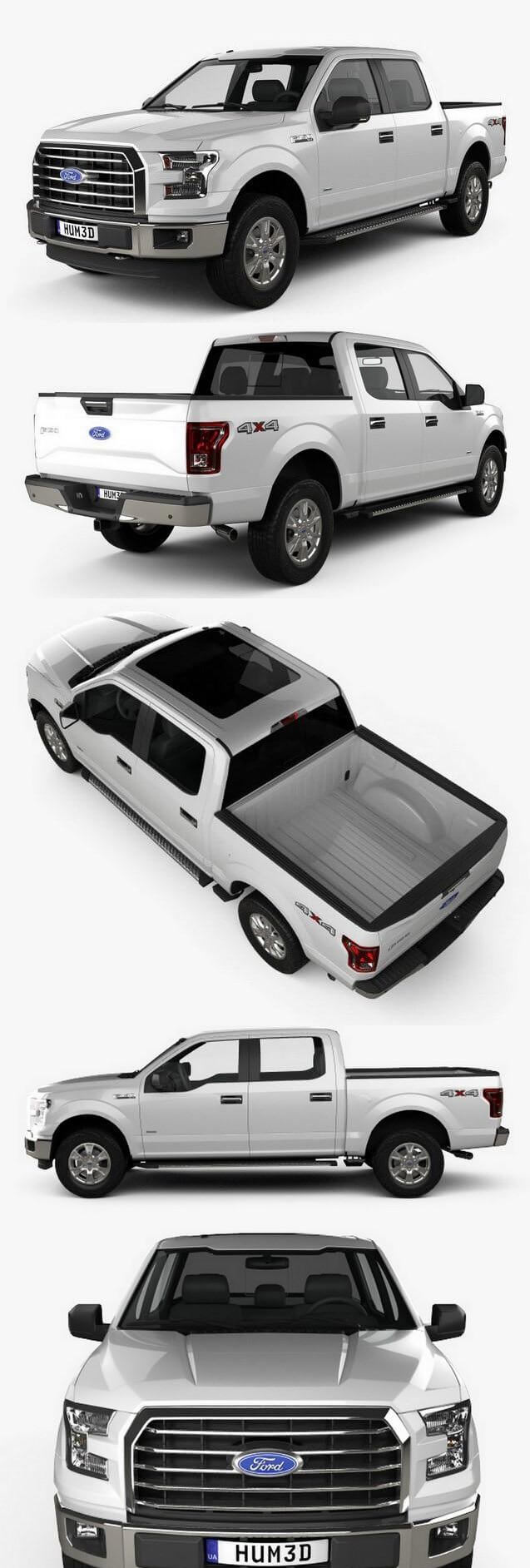 福特F-150 Super Crew Cab XLT 2014越野车汽车3D模型下载 (MAX,3DS,FBX,OBJ,C4D,LWO)