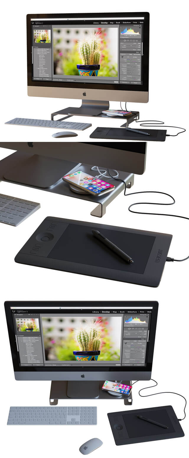 带有鼠标和键盘的Apple iMac PRO及iphone和绘图板3D模型(OBJ,MAX)