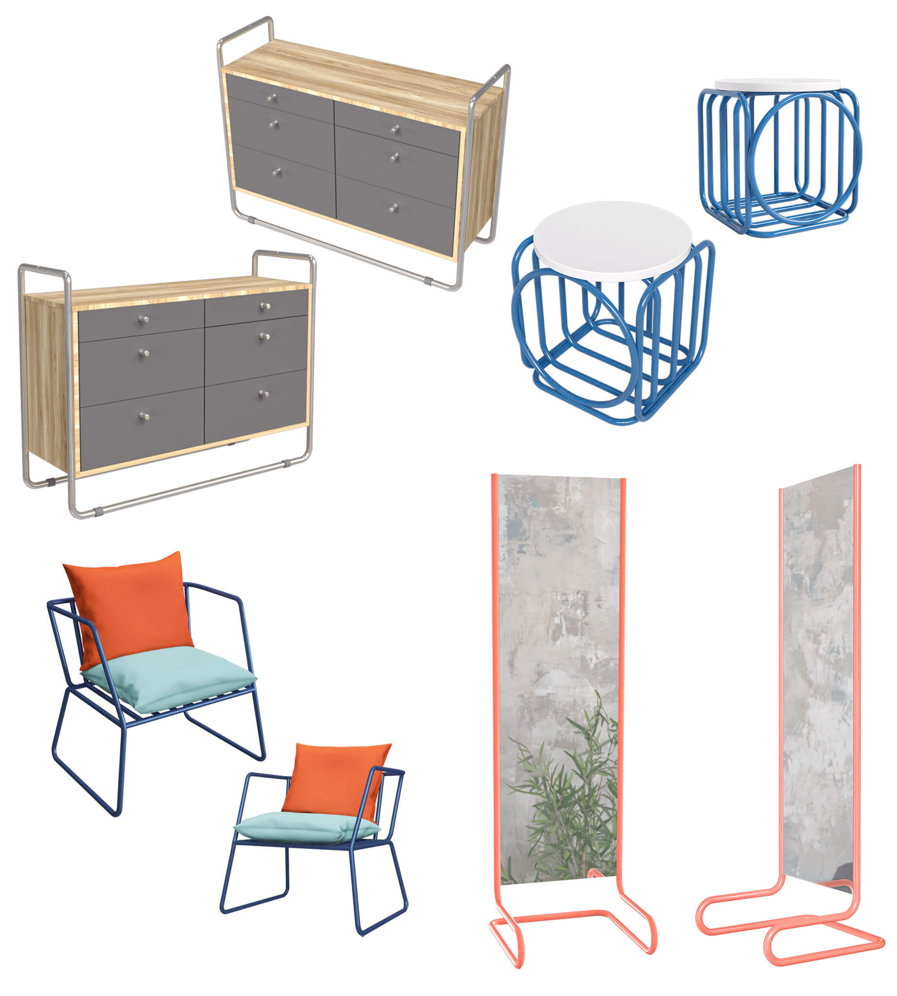 俄罗斯Woodi Bauhaus系列金属线条边框扶手椅咖啡桌镜子抽屉柜3D模型(OBJ,FBX,MAX)