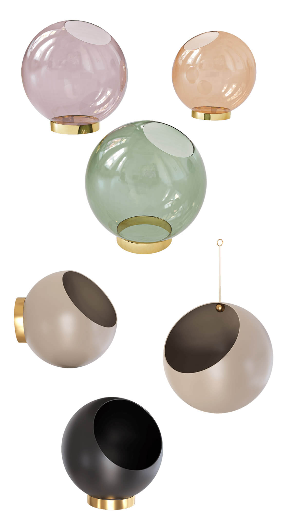 丹麦AYTM Globe系列带金属底座的球形玻璃花瓶和陶瓷花盆3D模型(OBJ,FBX,MAX)