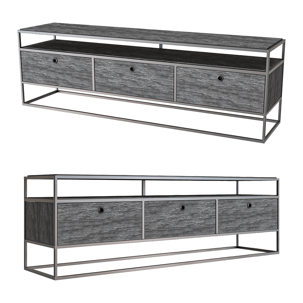 Teak House Tuareg系列金属边框实木面板黑色电视柜 抽屉柜3D模型(OBJ,FBX,MAX)