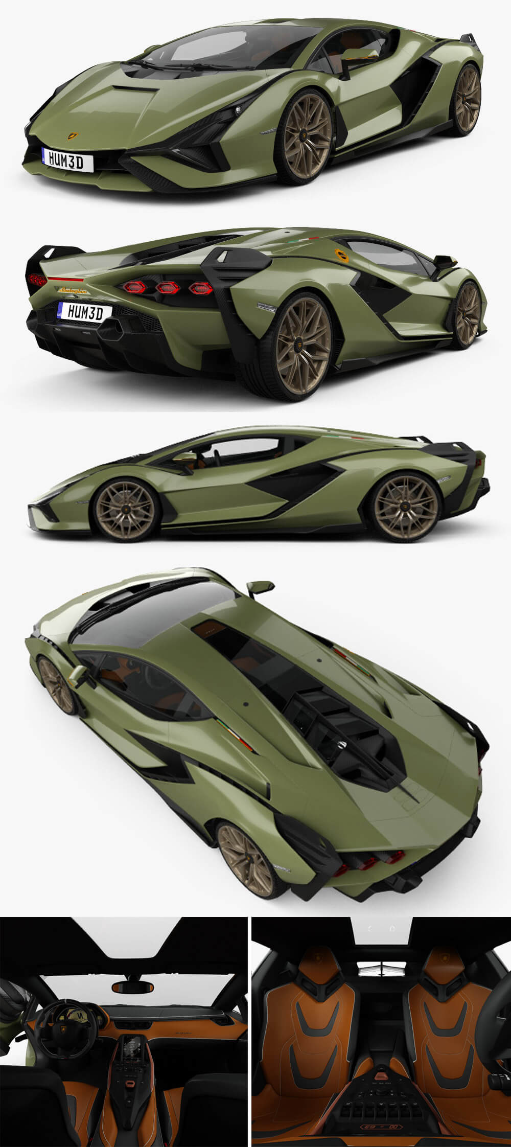 带内饰的Lamborghini兰博基尼Sian跑车3D模型(OBJ,FBX,MAX,C4D,LWO)